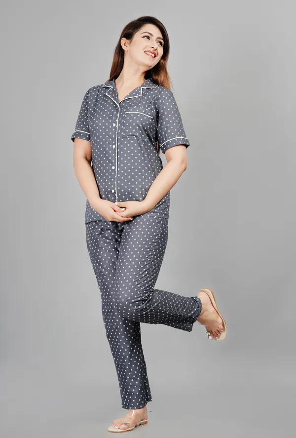 Whether you're lounging at home or getting ready for bed, this night suit set offers a perfect combination of style and ease, providing you with a restful night's sleep and cozy mornings. Ideal for gifting or treating yourself, its available in a variety of elegant colors and patterns.