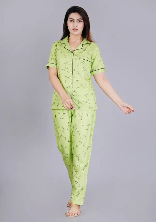 Whether you're lounging at home or getting ready for bed, this night suit set offers a perfect combination of style and ease, providing you with a restful night's sleep and cozy mornings. Ideal for gifting or treating yourself, its available in a variety of elegant colors and patterns.