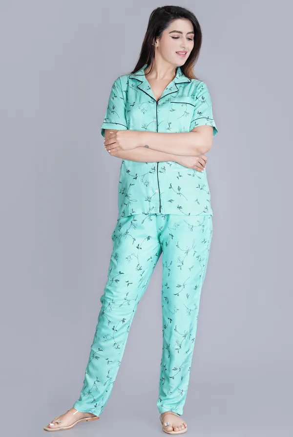 Whether you're lounging at home or getting ready for bed, this night suit set offers a perfect combination of style and ease, providing you with a restful night's sleep and cozy mornings. Ideal for gifting or treating yourself, its available in a variety of elegant colors and patterns.