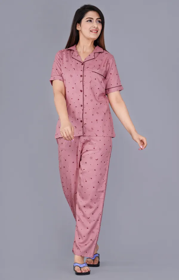 Whether you're lounging at home or getting ready for bed, this night suit set offers a perfect combination of style and ease, providing you with a restful night's sleep and cozy mornings. Ideal for gifting or treating yourself, its available in a variety of elegant colors and patterns.